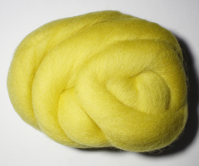 Česaná jemná vlna MERINO barva žlutá světlá. Hmotnost 20 g s odchylkou +- 5 %, která je závislá na vlhkosti okolního prostředí. Rozměr vlákna 24 μ. Země původu Jižní Amerika. Vhodná pro předení, mokré a suché plstění ( tvorba andíků, zvířátek, postav atd.).