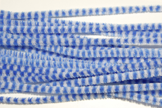 Modelovací chlupatý proužkovaný drátek průměru 6 mm o celkové délce 30 cm. Vhodný pro aranžovací a další výtvarné techniky. Lze jej ohýbat, stříhat či splétat. Nevhodné pro děti do 3 let, nebezpečí udušení. Modrá - bílá. Cena za jedno balení obsahující 20 ks.