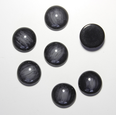 Černé kabašony žíhané šedou. Průměr 12 mm. Cena za jedno balení o 30 kusech.