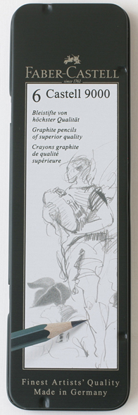 Sada grafitových tužek FABER CASTELL 9000. 6 kusů v plechové krabičce tvrdosti HB - B - 2B - 4B - 6B - 8B. Nebezpečí udušení. Nevhodné pro děti do 3 let.