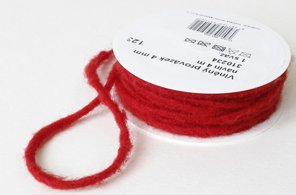 - VLNĚNÝ PROVÁZEK PRŮMĚRU 4 mm - návin 4 m - ČERVENÝ