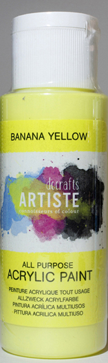Univerzální akrylová barva ARTISTE 59 ml vodou ředitelná. Schnutí asi 1 hodinu. Barva banánově žlutá. Nevhodné pro děti do 3 let.