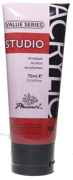 Akrylová barva PHOENIX, kadmium červené tmavé (328), 75 ml. Po zaschnutí lehce matný nádech.