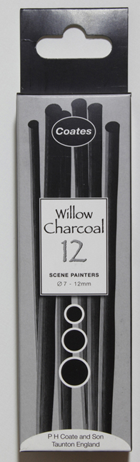 Přírodní uhel COATES z vrbového dřeva. Průměr 7 - 12 mm, délka 15 cm.