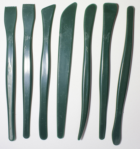 Sada sedmi plastových špachtlí pro modelování o celkové délce 15 cm.