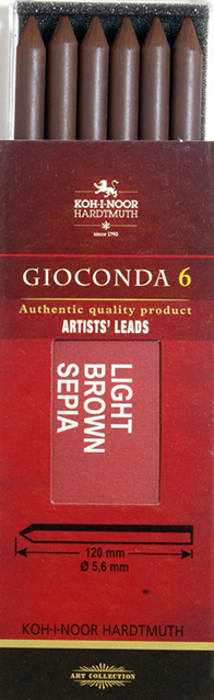 Šest kusů uměleckých tuh KOH - I - NOOR délky 120 mm, průměru 5,6 mm. Sépie světle hnědá.